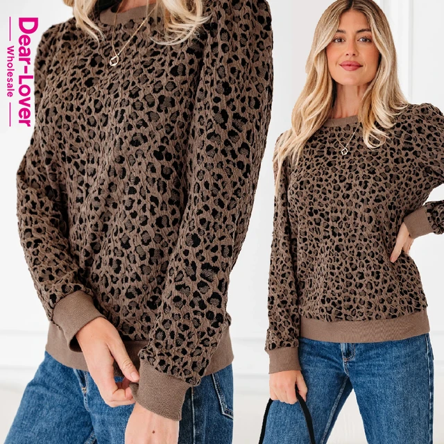 Dear-Lover Wholesale Western Boutique Fashion Chic Trendy Women Ribbed Trim Leopard Print Long Sleeve Top